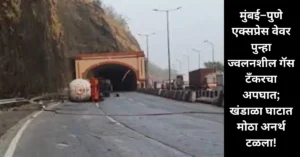 मुंबई–पुणे एक्सप्रेस वेवर पुन्हा ज्वलनशील गॅस टँकरचा अपघात; खंडाळा घाटात मोठा अनर्थ टळला!