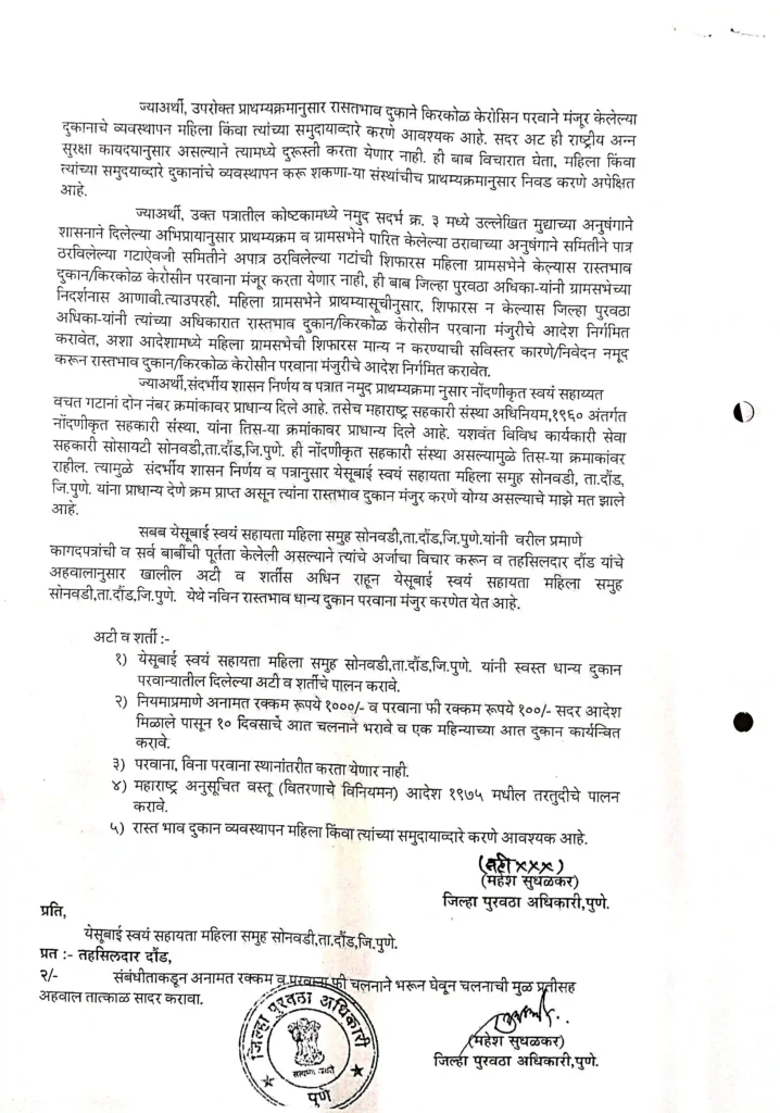 पुणे जिल्हा पुरवठा विभागाकडून देण्यात आलेल्या निर्णयाची प्रत:-